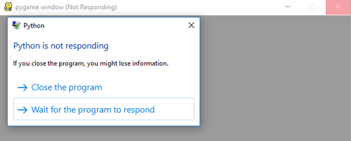 Finally, we have code to exit the game loop, let's be responsible programmers and tell the library it's time to cleanup with pygame.quit().