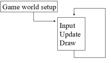Every iteration (also called a game frame), we check for input from the player, update the game world, then draw the game state.